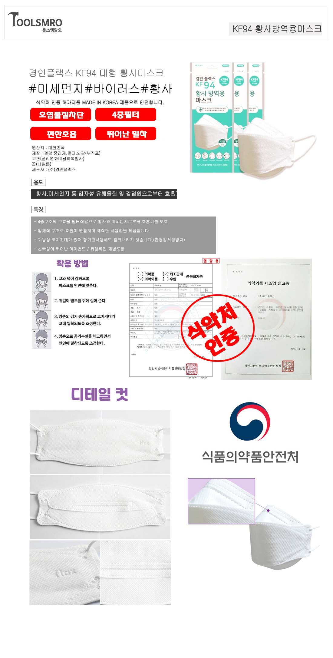 1. 품명 및 모델명 : KF94 마스크 대형 화이트 경인플랙스 국내생산 대량구매가능 (1매)