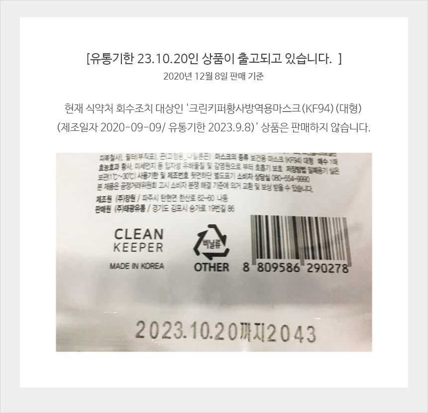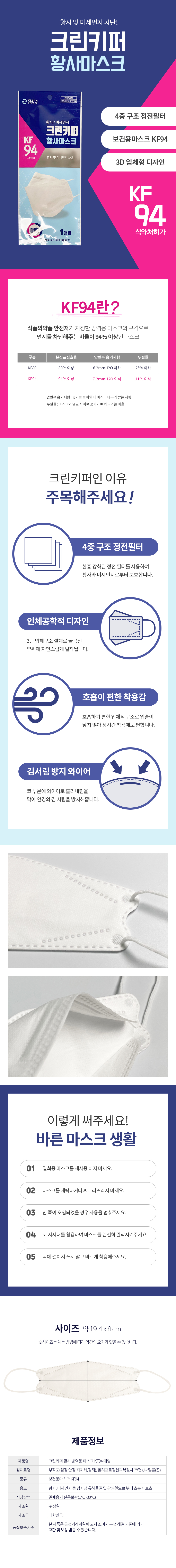 크린키퍼 황사마스크 KF94 (1개입)(대형) 국산 식약처허가 이미지/