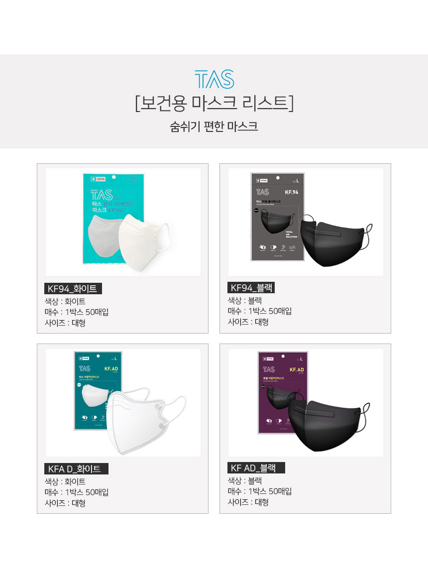 타스 KF94마스크 KFAD비말차단마스크 대형마스크 새부리형마스크 50매1박스 당일발송 이미지/