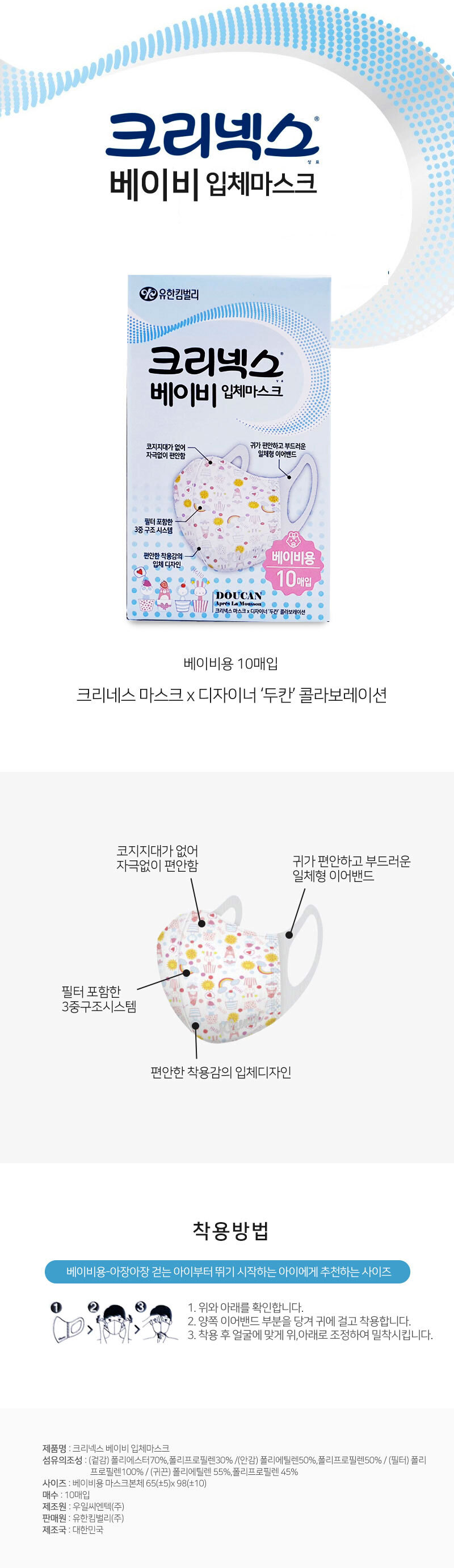 편한 착용감 크리넥스 베이비 입체mask 10매입/ 아기마스크