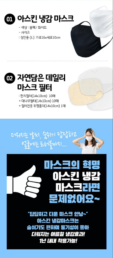 빨아쓰는 효성 아스킨 필터 마스크 메쉬2겹 1장+1장 더 이미지/