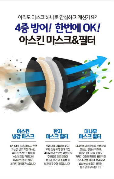 빨아쓰는 효성 아스킨 필터 마스크 메쉬2겹 1장+1장 더