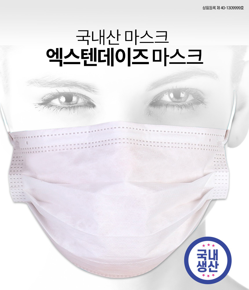 국내생산 엑스텐데이즈 3중필터 일회용 마스크 50매