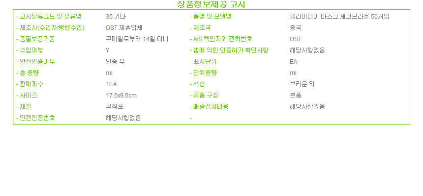 클리어데이 마스크 체크옐로우 50개입 이미지/