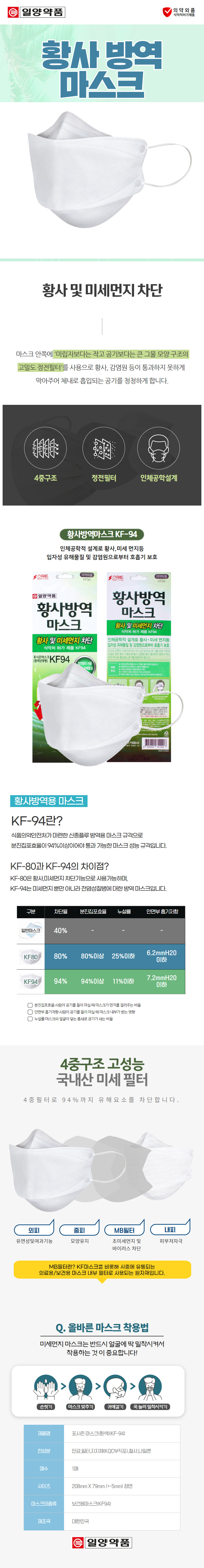 국산 마스크 KF94 일양 마스크 50EA