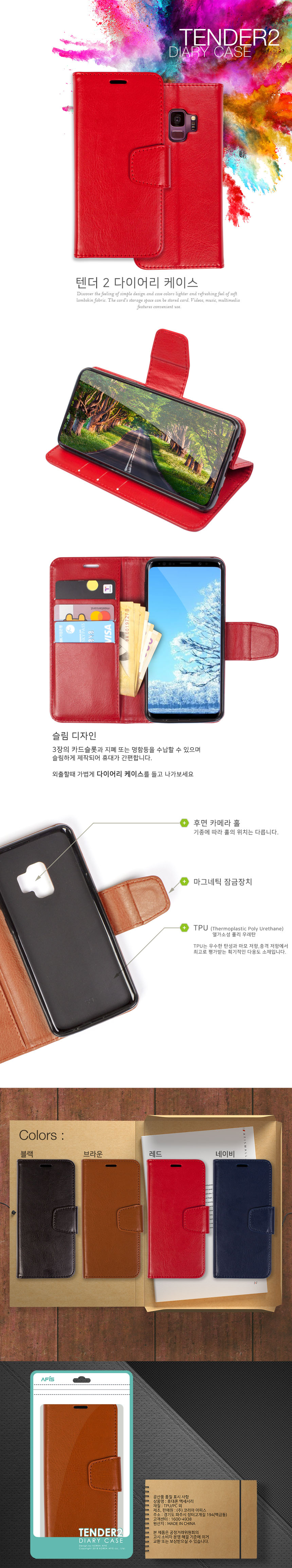 아이폰X 텐더2 다이어리 케이스 페블블루