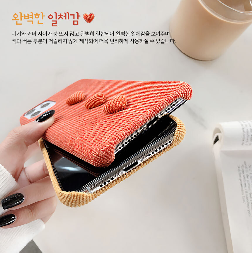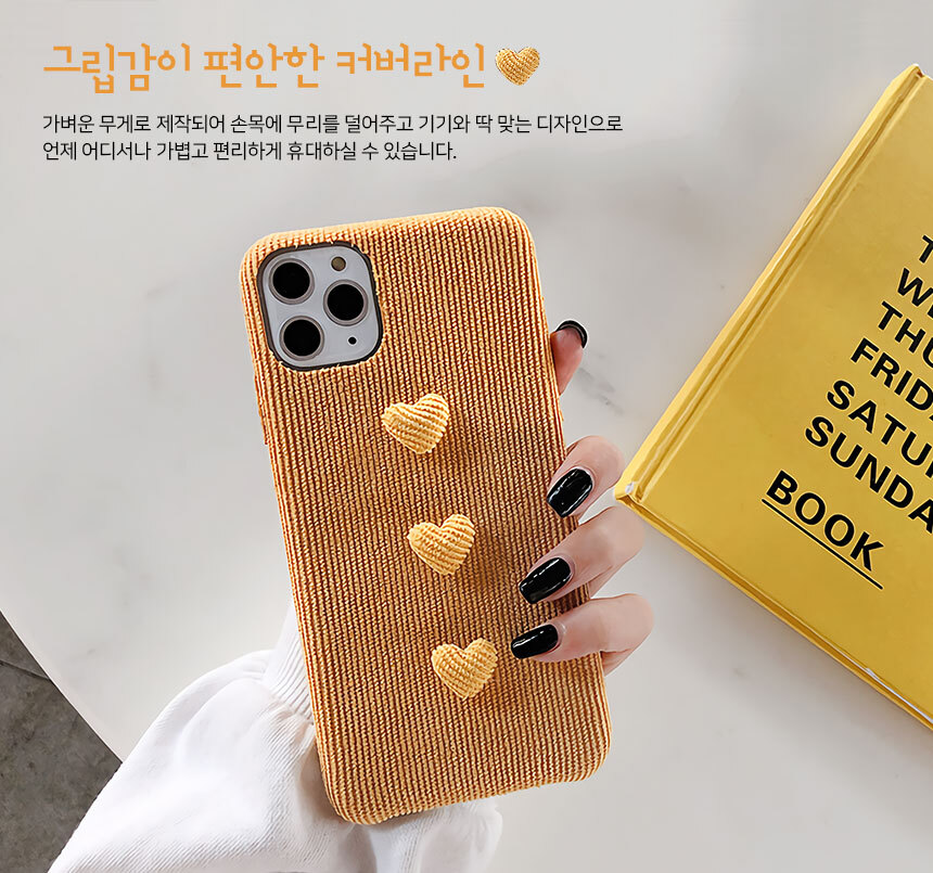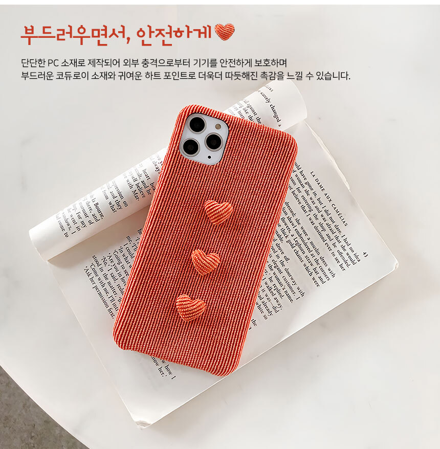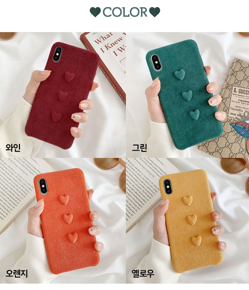 아이폰XR 파스텔 3D 하트 코듀로이 케이스 하드 P464