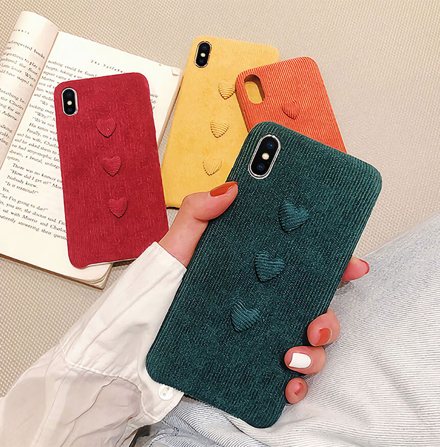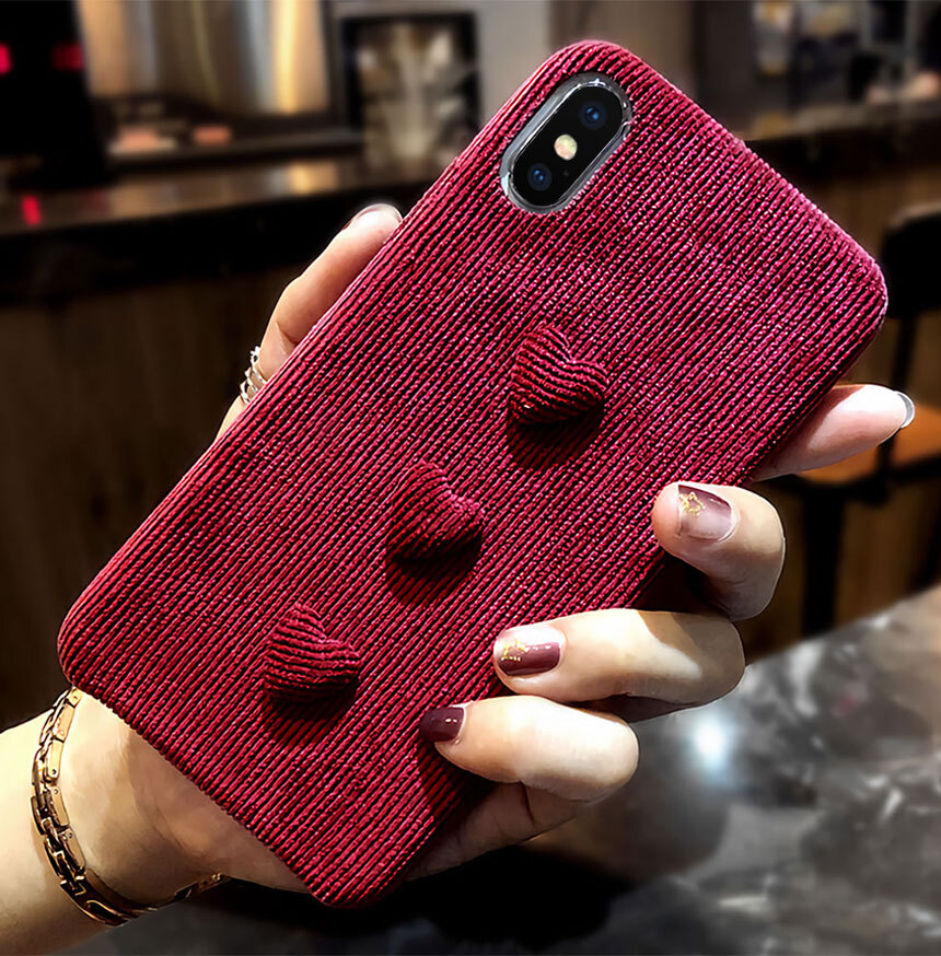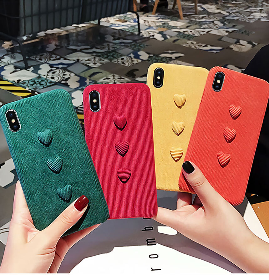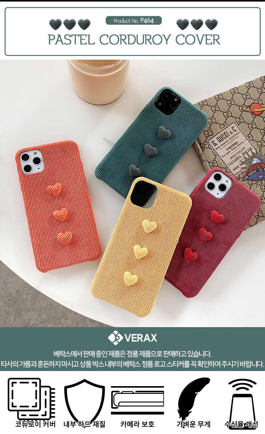 아이폰XR 파스텔 3D 하트 코듀로이 케이스 하드 P464