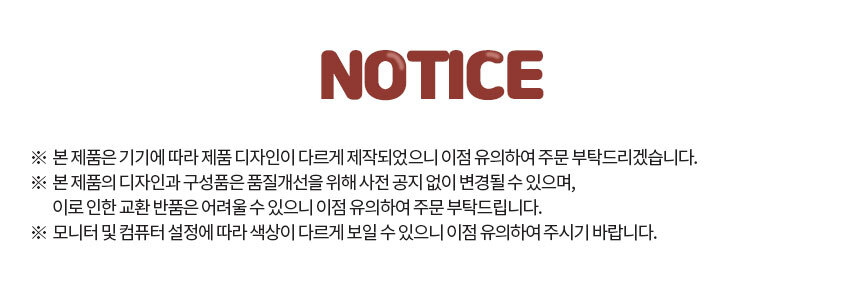• 다른 제품과 같이 주문할 경우 따로 배송됨을 말씀드립니다.