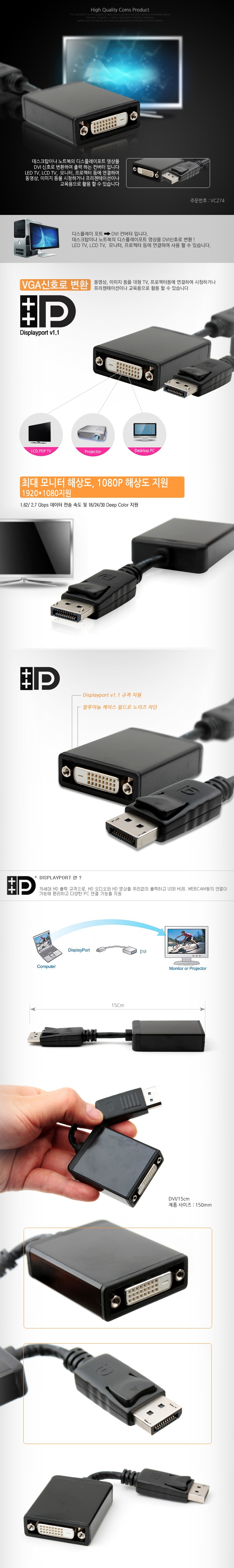 영상장비 Display PortM TO DVI 241F 컨버터/데스크탑/노트북/모니터/프로 이미지/