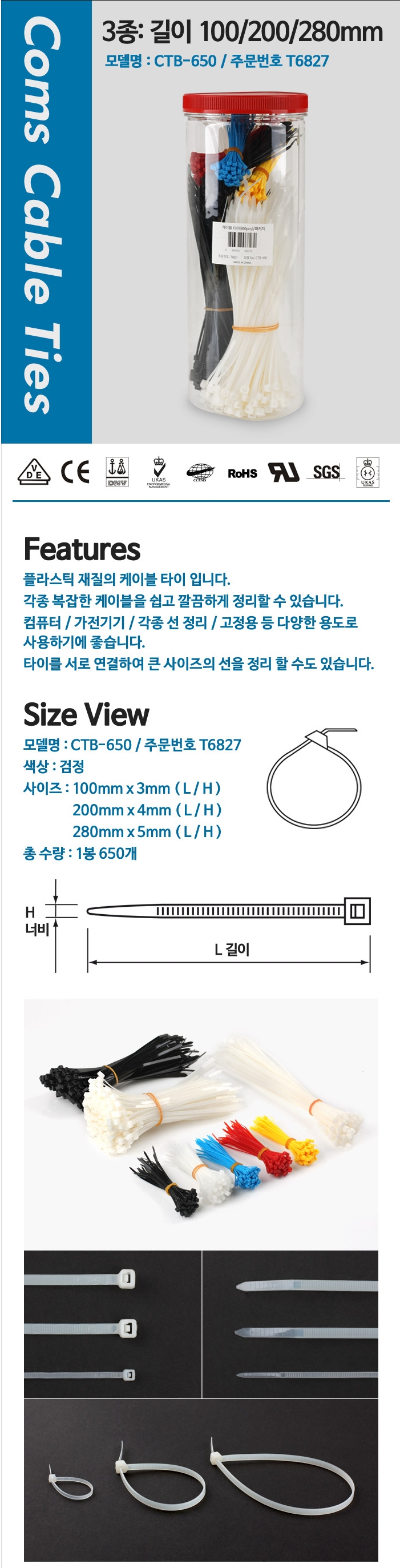 케이블 타이 패키지 100/200/280mm 650pcs 이미지/