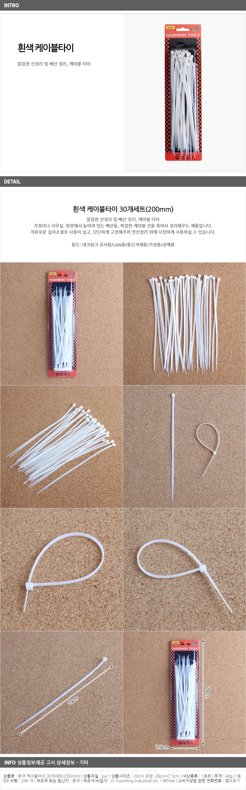 흰색 케이블타이 30개세트(200mm) 이미지/