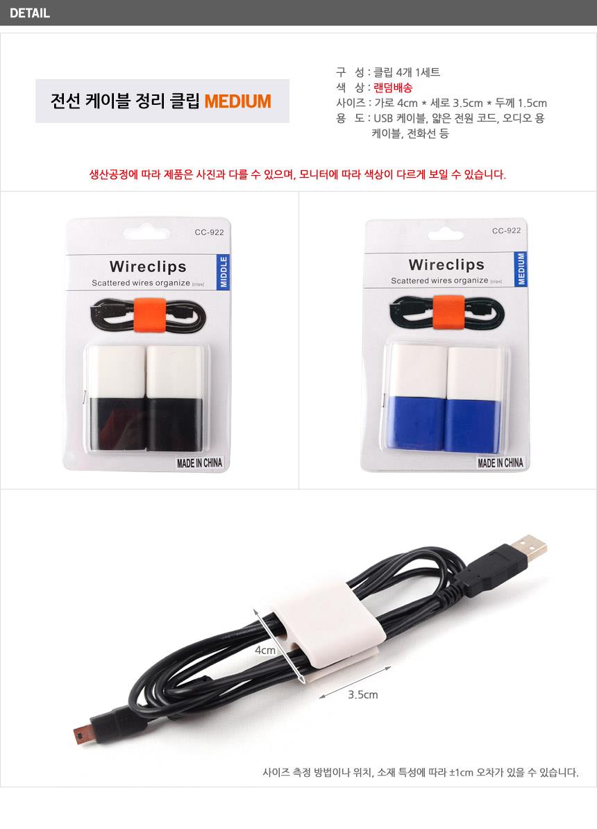 전선 케이블정리 클립 색상랜덤발송x10개 배선정리 이미지/