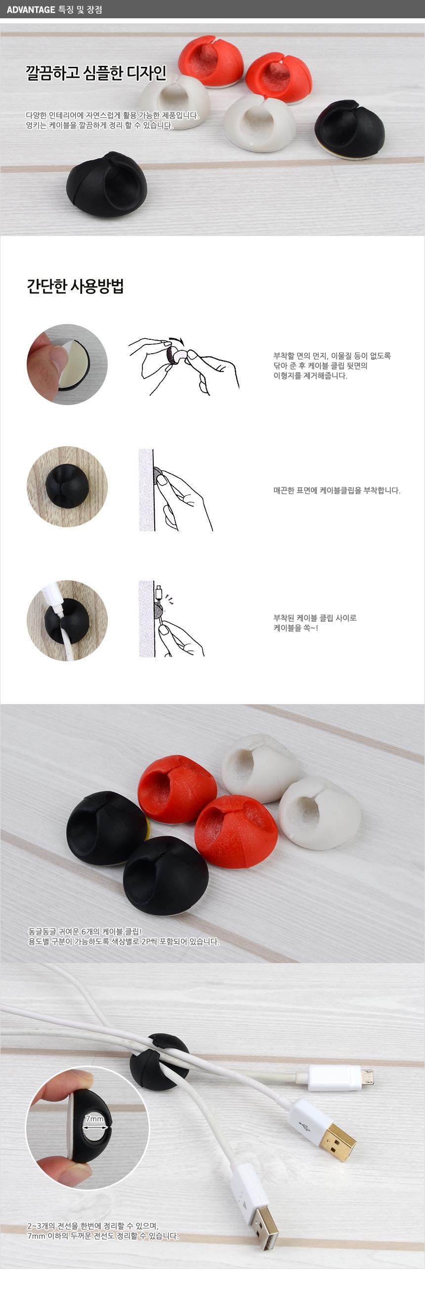 부착식 6P 칼라 케이블클립x10개 깔끔하고편리 사무실