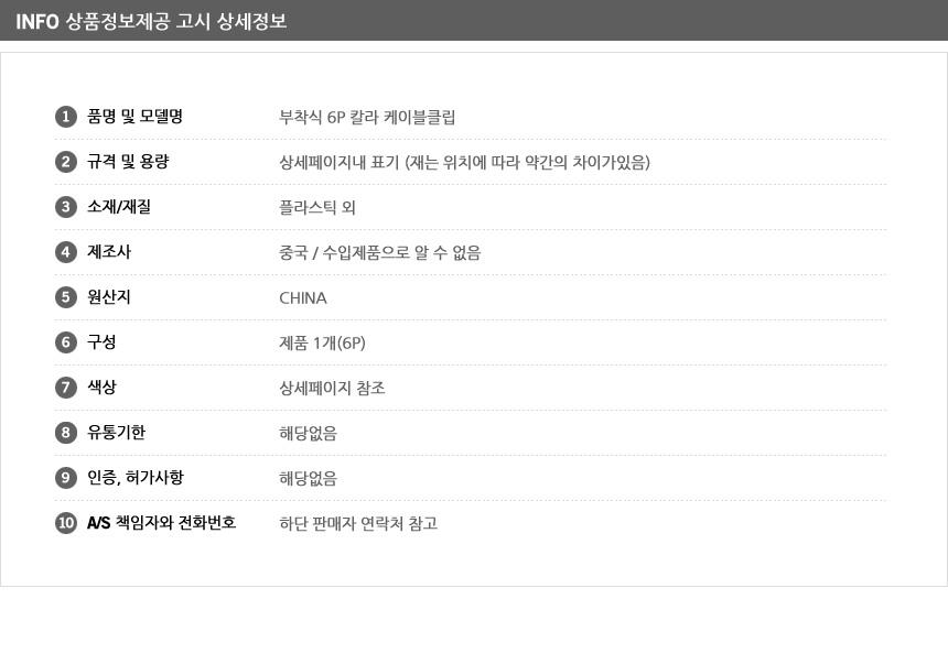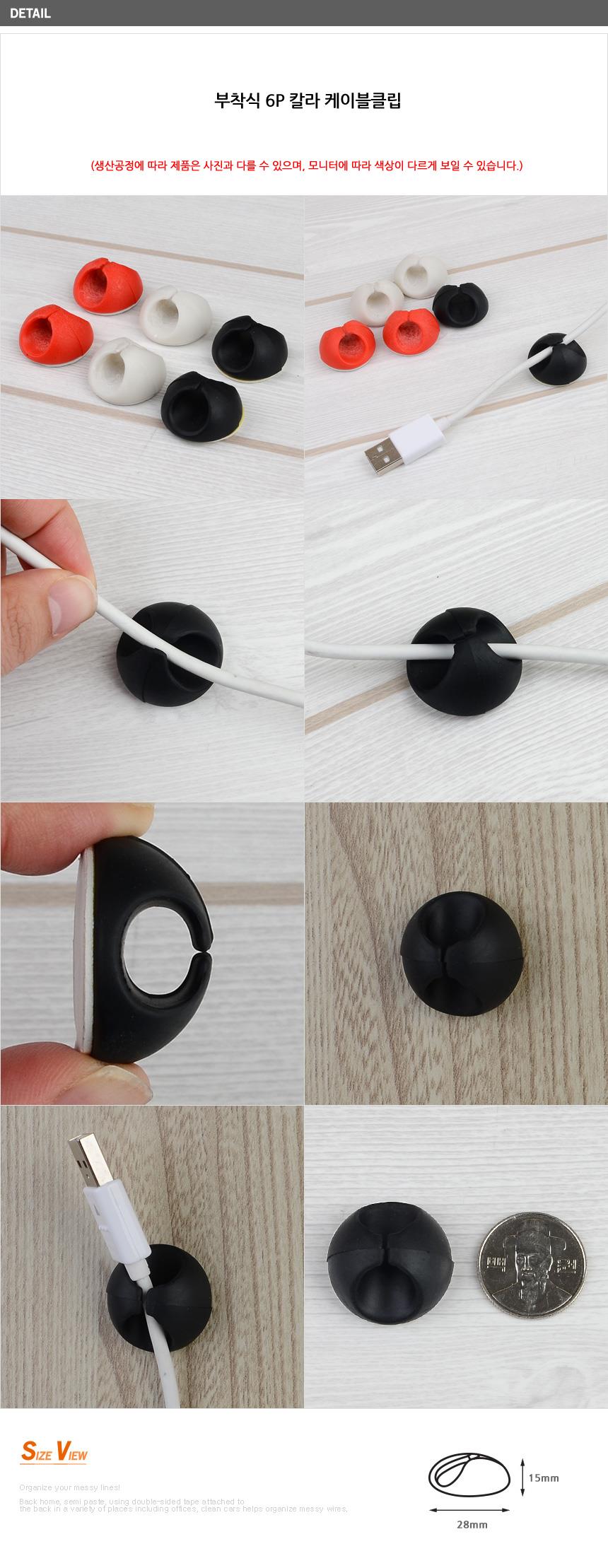 부착식 6P 칼라 케이블클립x10개 깔끔하고편리 사무실 이미지/