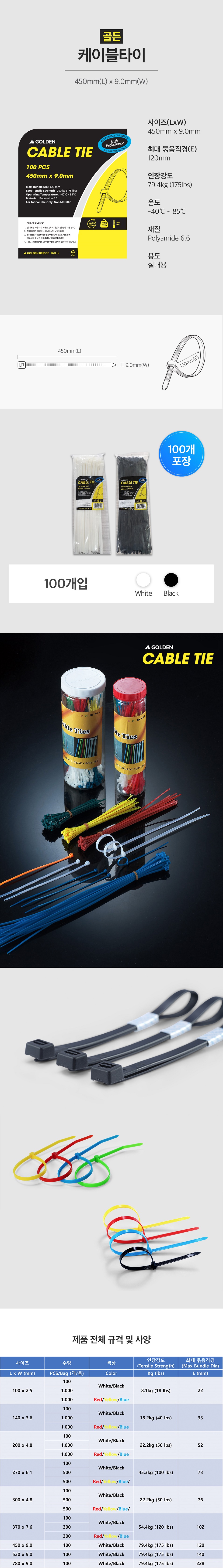 케이블타이 / 450mm / 흑백 / 1봉(100개입)