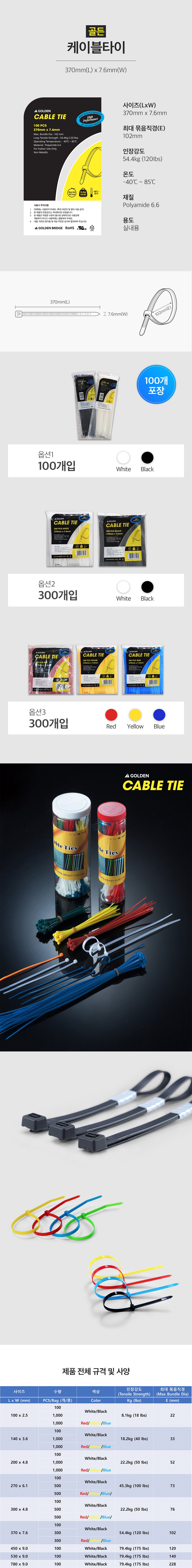 케이블타이 / 370mm / 컬러(흑백적황청) / 1봉(300개입)
