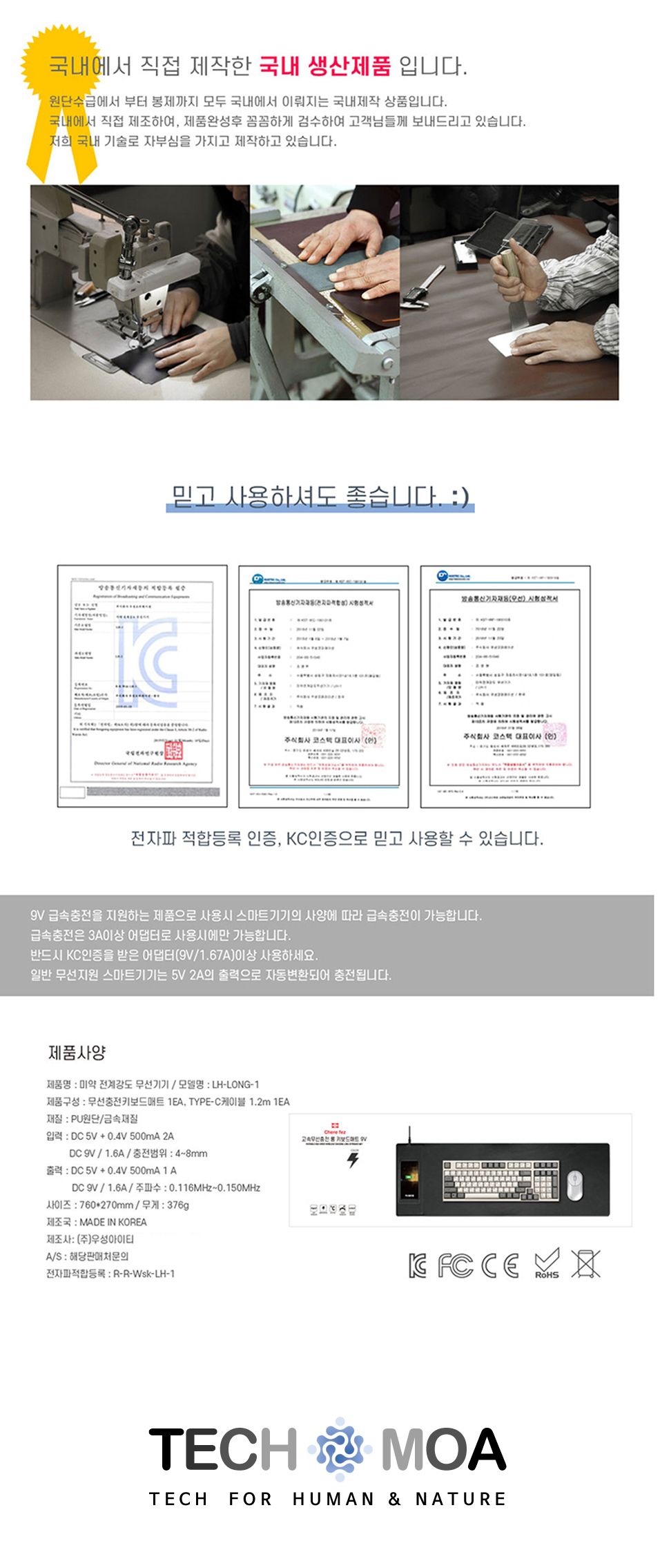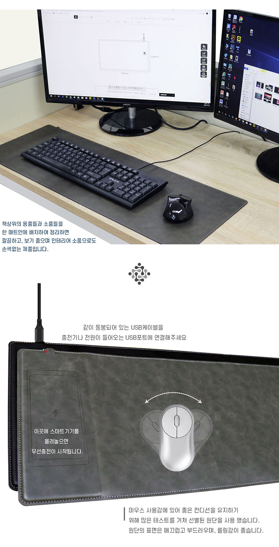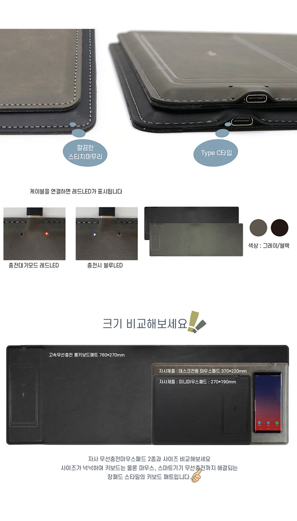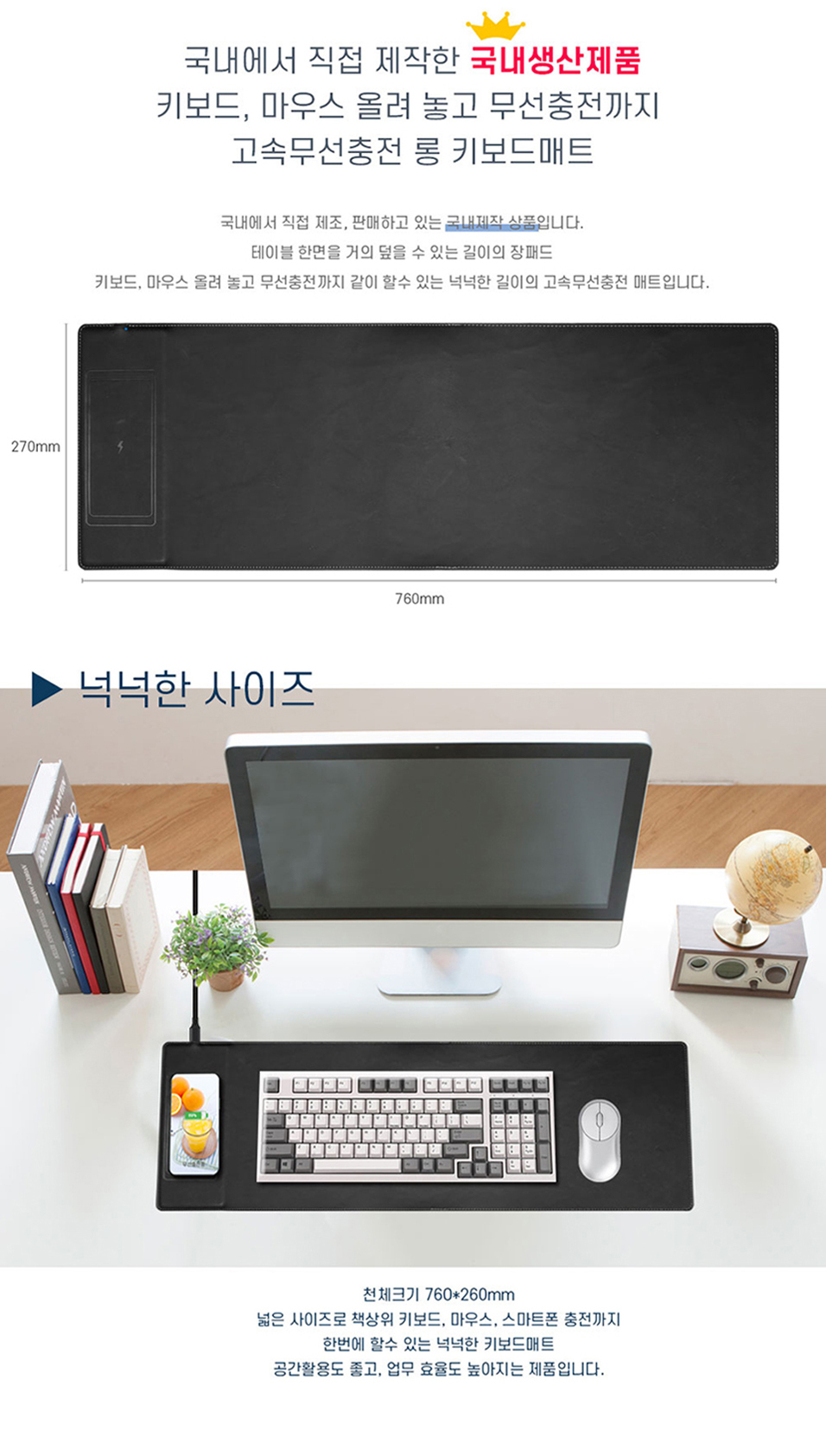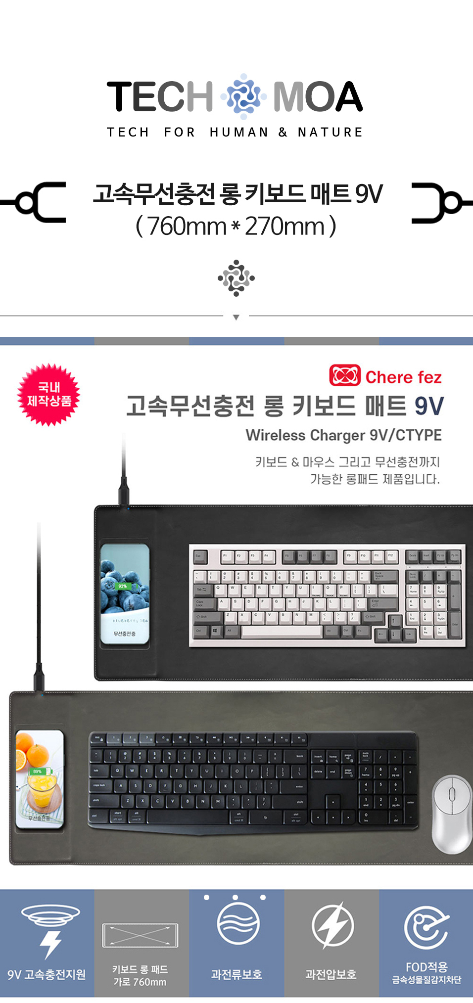 고속무선충전 롱 키보드 마우스 매트 9V 저소음