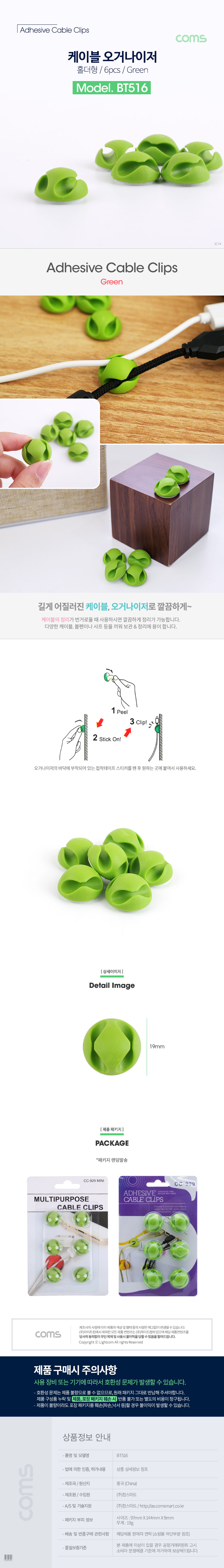 케이블 오거나이저(홀더형/6pcs) Green / 케이블 / 볼펜 고정