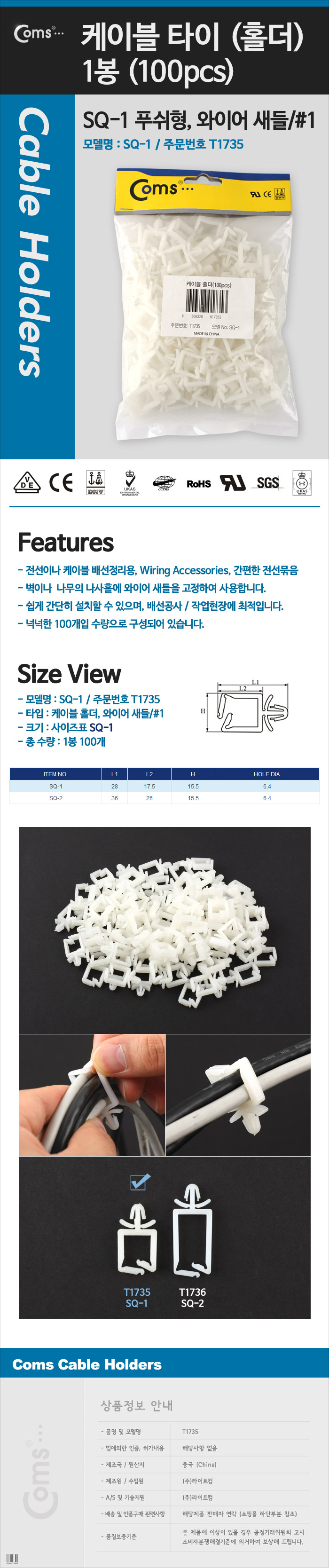 케이블 타이(홀더/100pcs) SQ-1 푸쉬형 와이어 새들/1