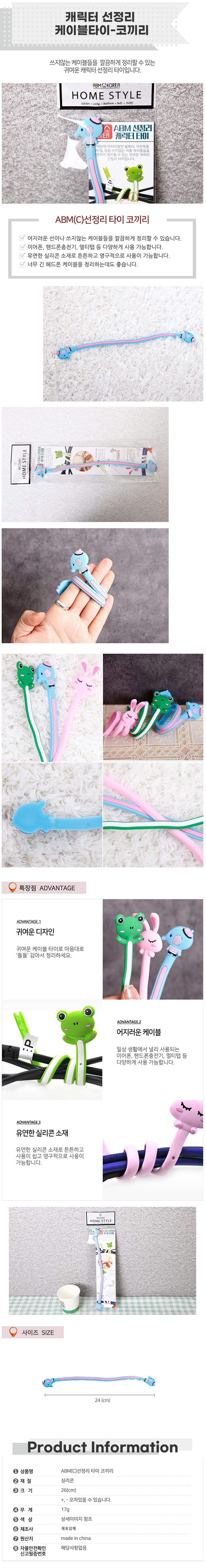 캐릭터 선정리 케이블타이-코끼리x8개 컴퓨터선정리