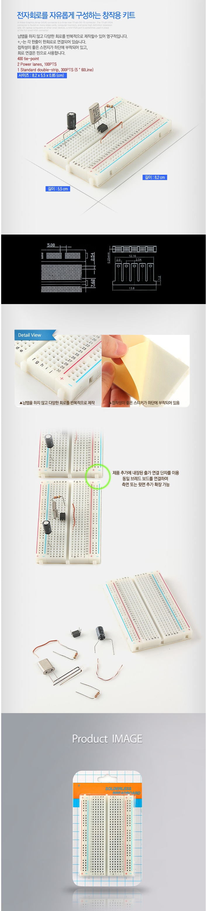 DIY 제작 공구 브레드 보드 길이17.5CM/전자회로 장착용 키트/키트/장착용키트/전자회