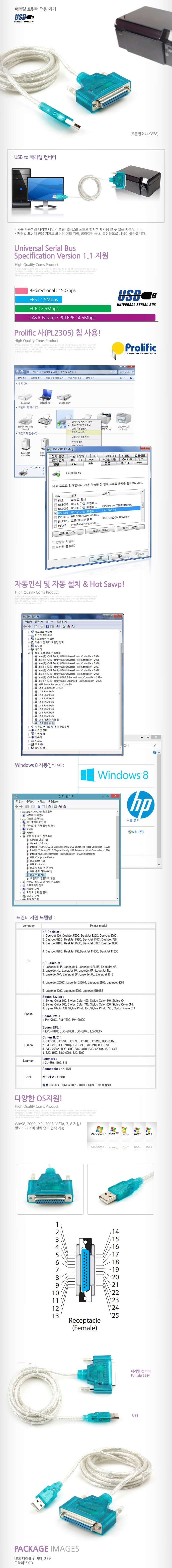 25P USB 패러렐 컨버터/패러럴 프린터 전용 기기