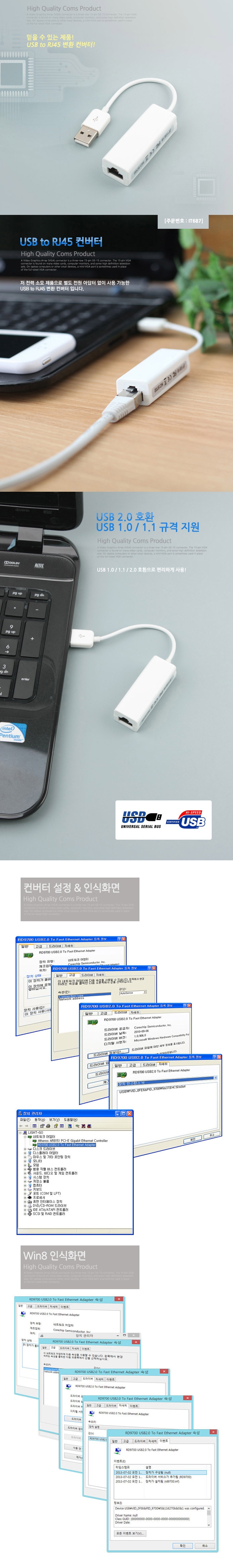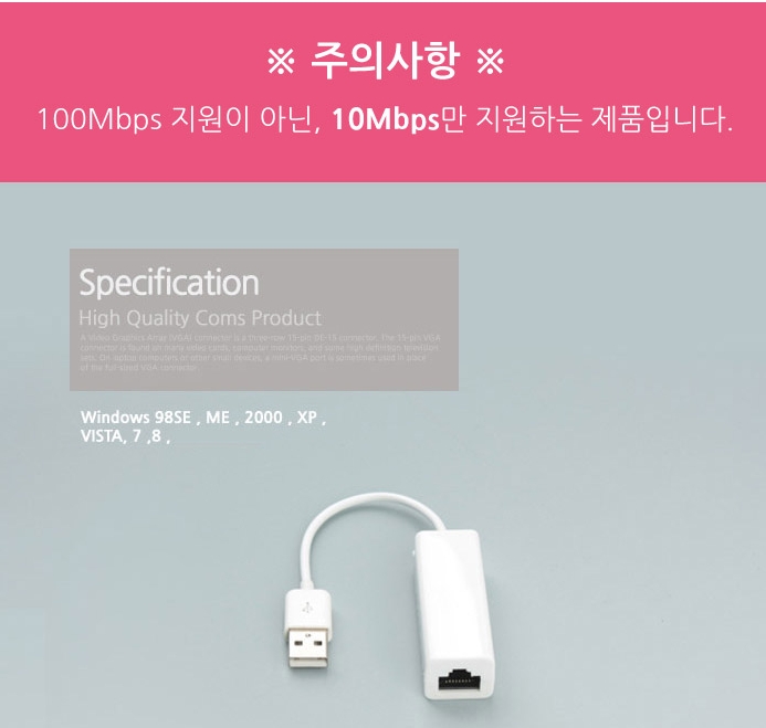 USB TO RJ45 변환 컨버터/10Mbps 지원 이미지/