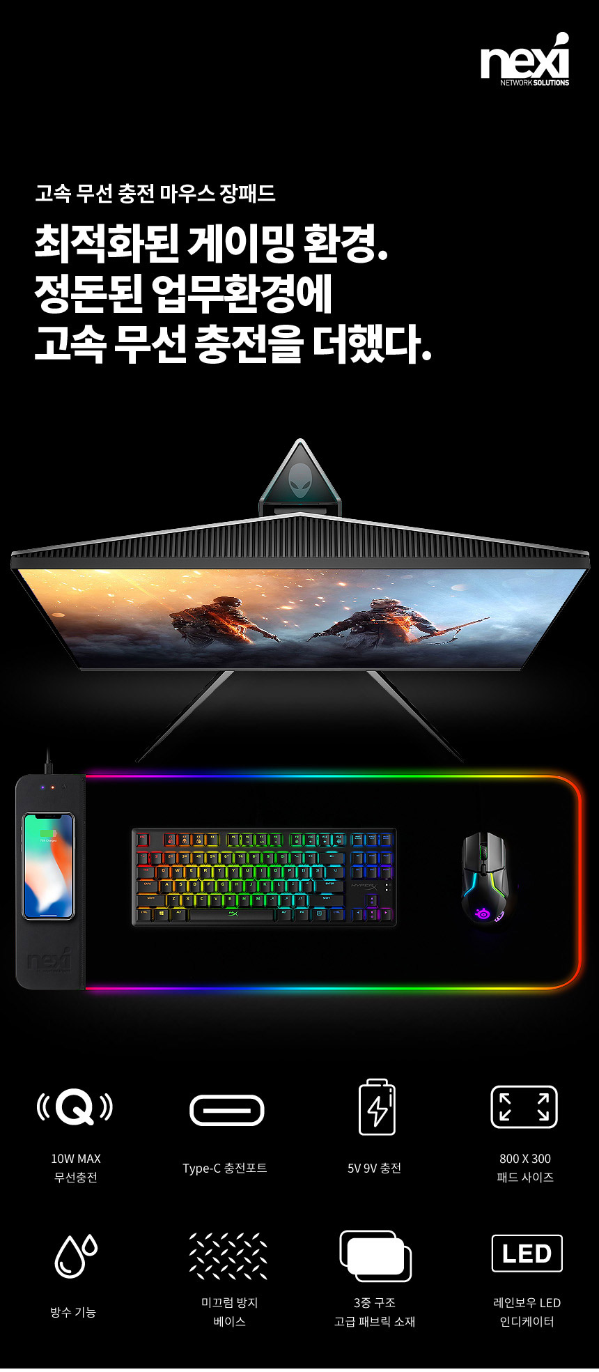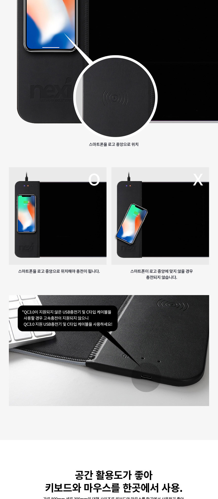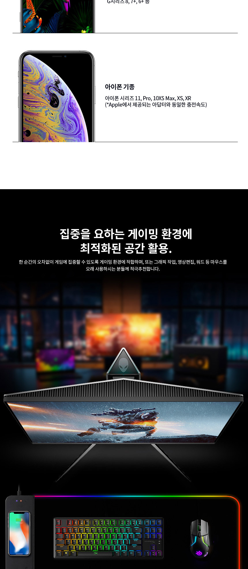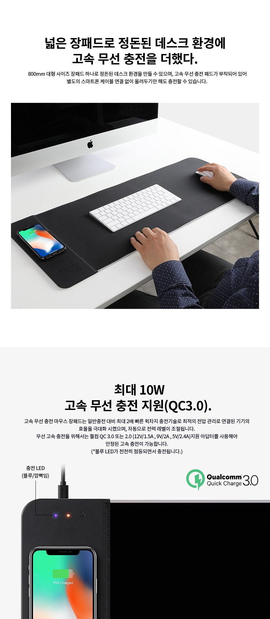 <상품명 : 퀵차지3.0 LED장패드 게이밍 무선충전마우스패드>