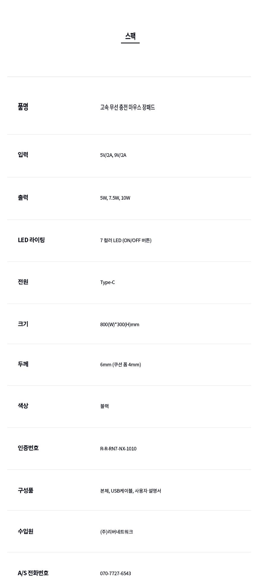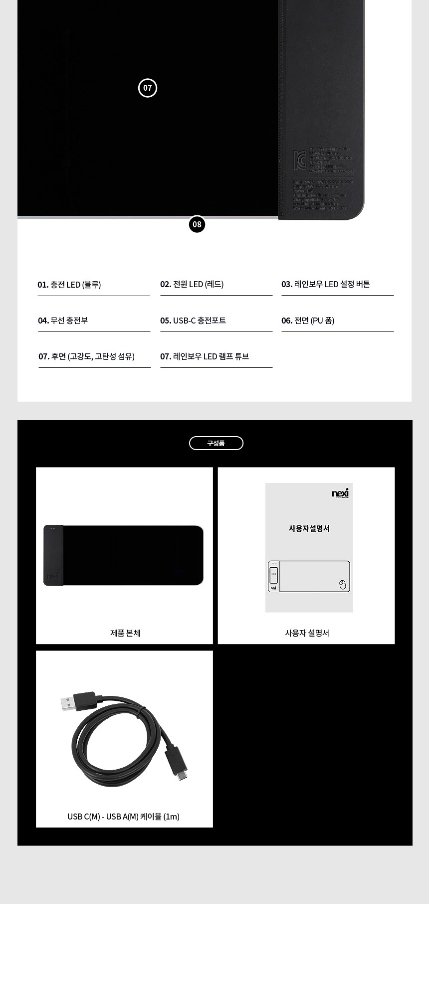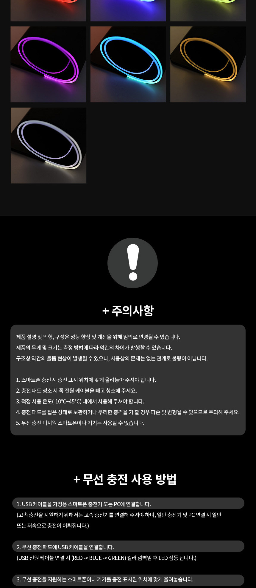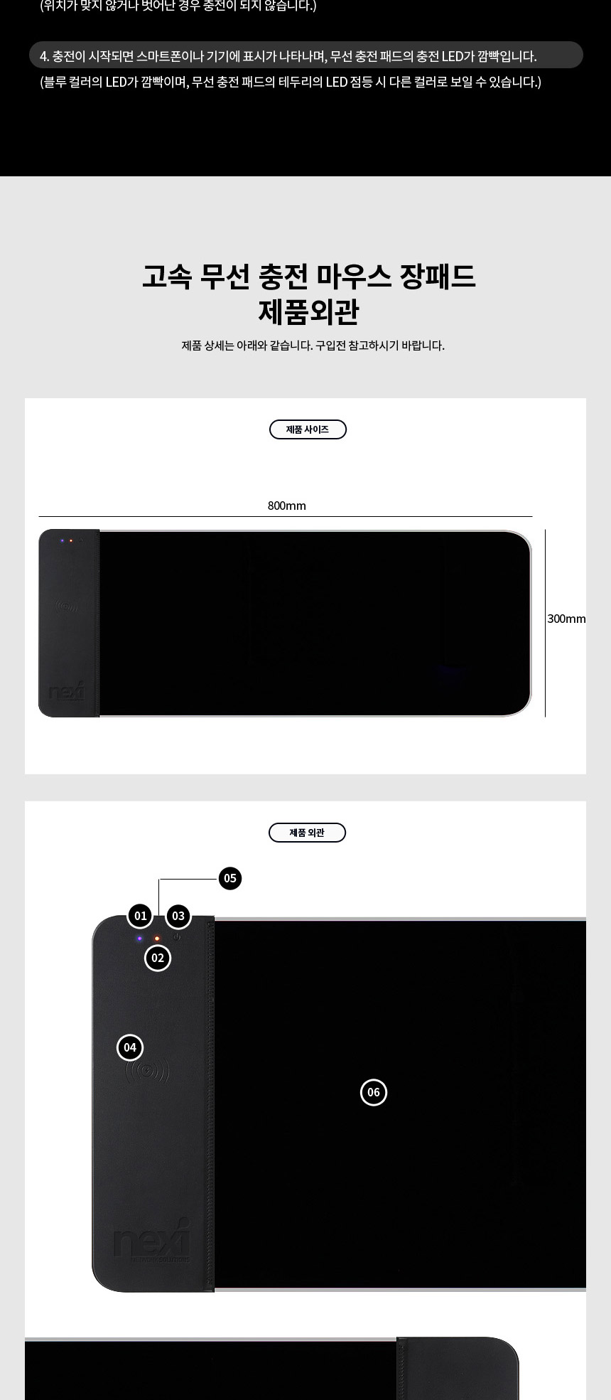 <상품명 : 퀵차지3.0 LED장패드 게이밍 무선충전마우스패드>