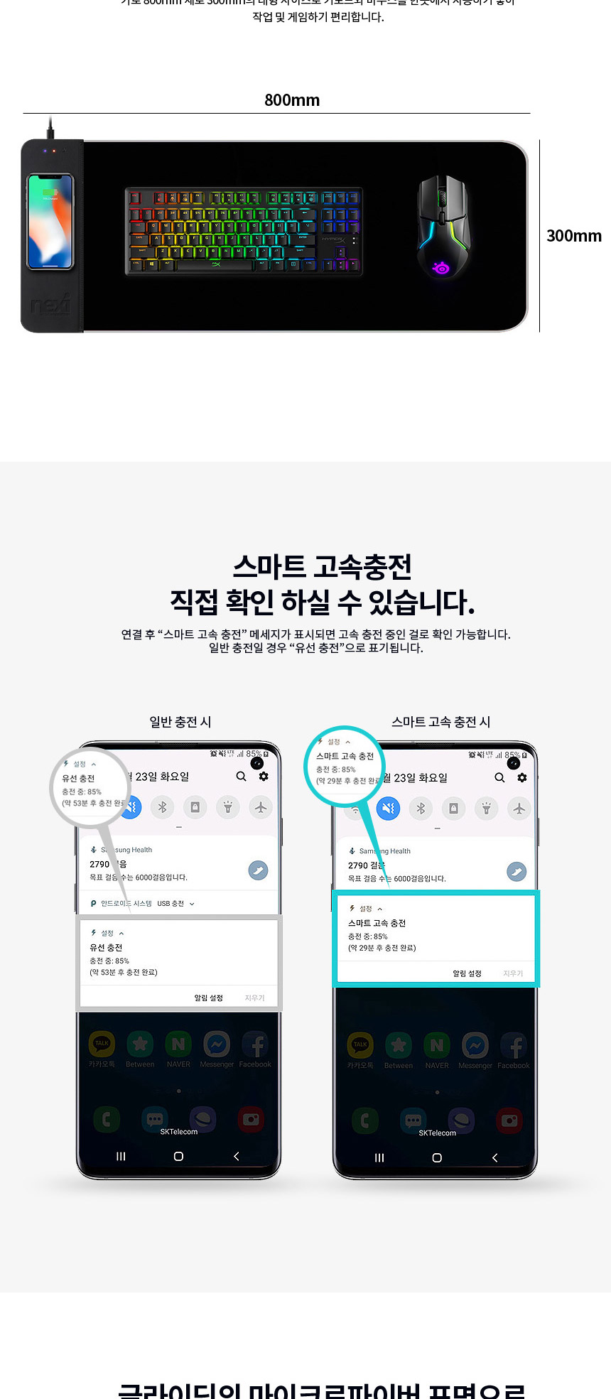 퀵차지3.0 LED장패드 게이밍 무선충전마우스패드