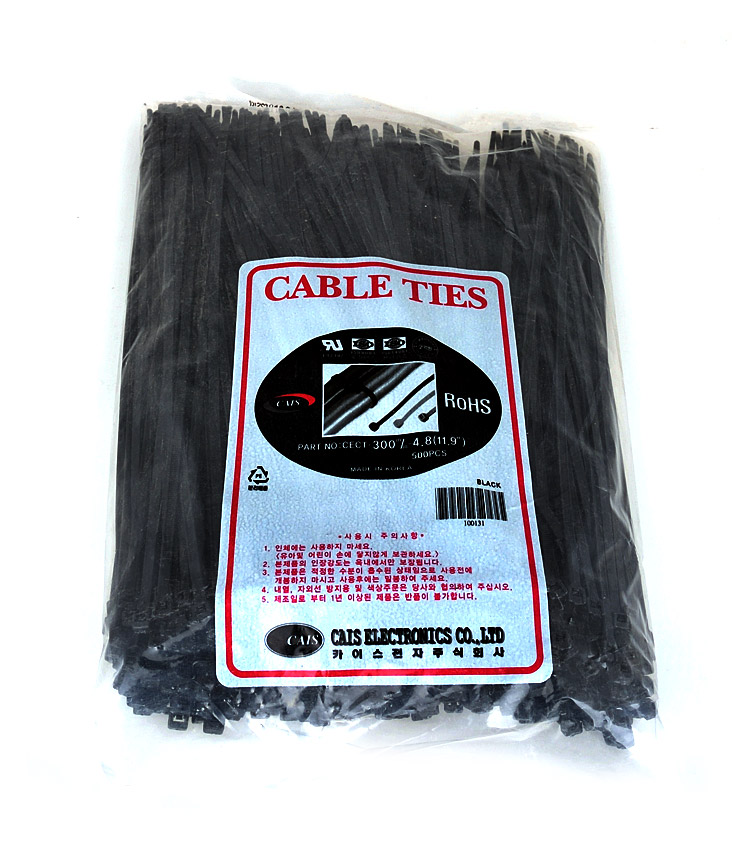 ETC 케이블타이 300(흑) 전선정리 고정 벽고정 컴퓨터 차량 선정리