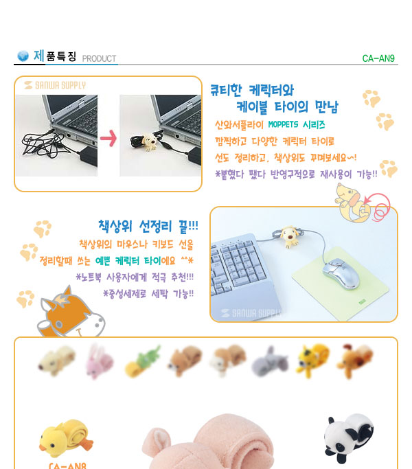 강원전자 SANWA CA AN9 고급 케릭터 케이블 타이 돼지 이미지/