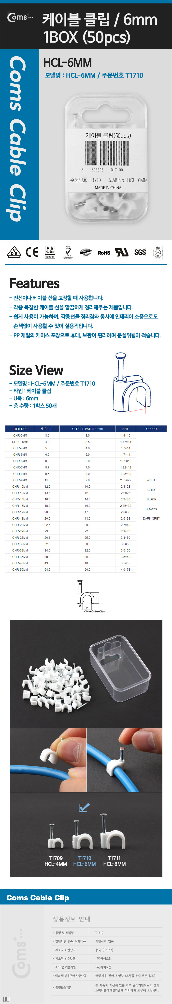 케이블 클립(50pcs)/고정 못형 HCL-6MM BOX 6mm