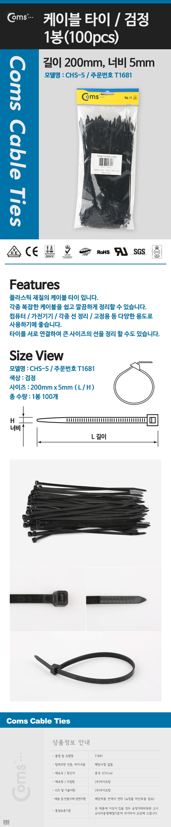 케이블타이 (100pcs) CHS-5 200 검정 200mm x 5mm 이미지/