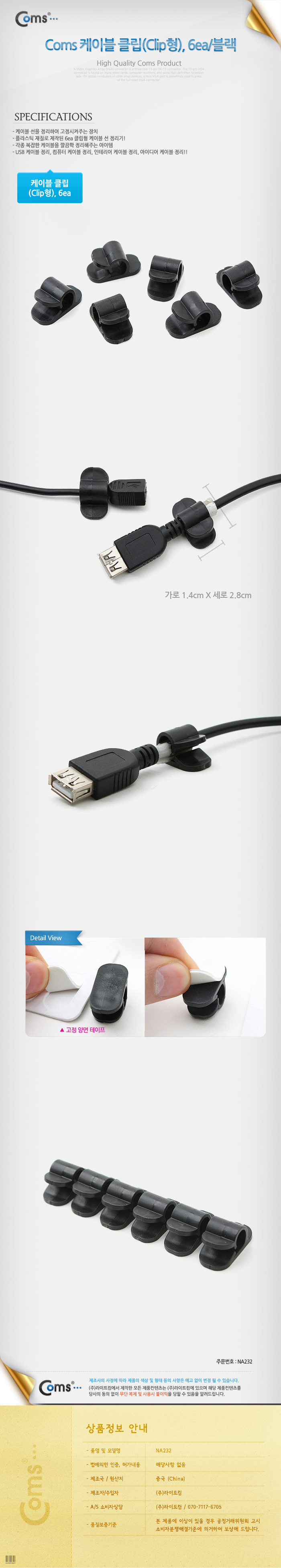 케이블 클립(Clip형) 6ea/블랙 이미지/