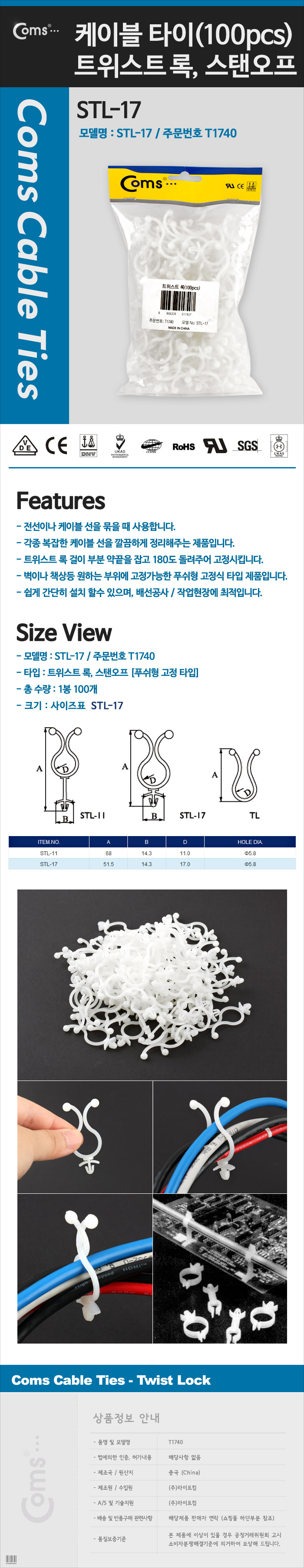 케이블 타이(트위스트 록/100pcs) STL-17 스탠오프 17/푸쉬형 이미지/