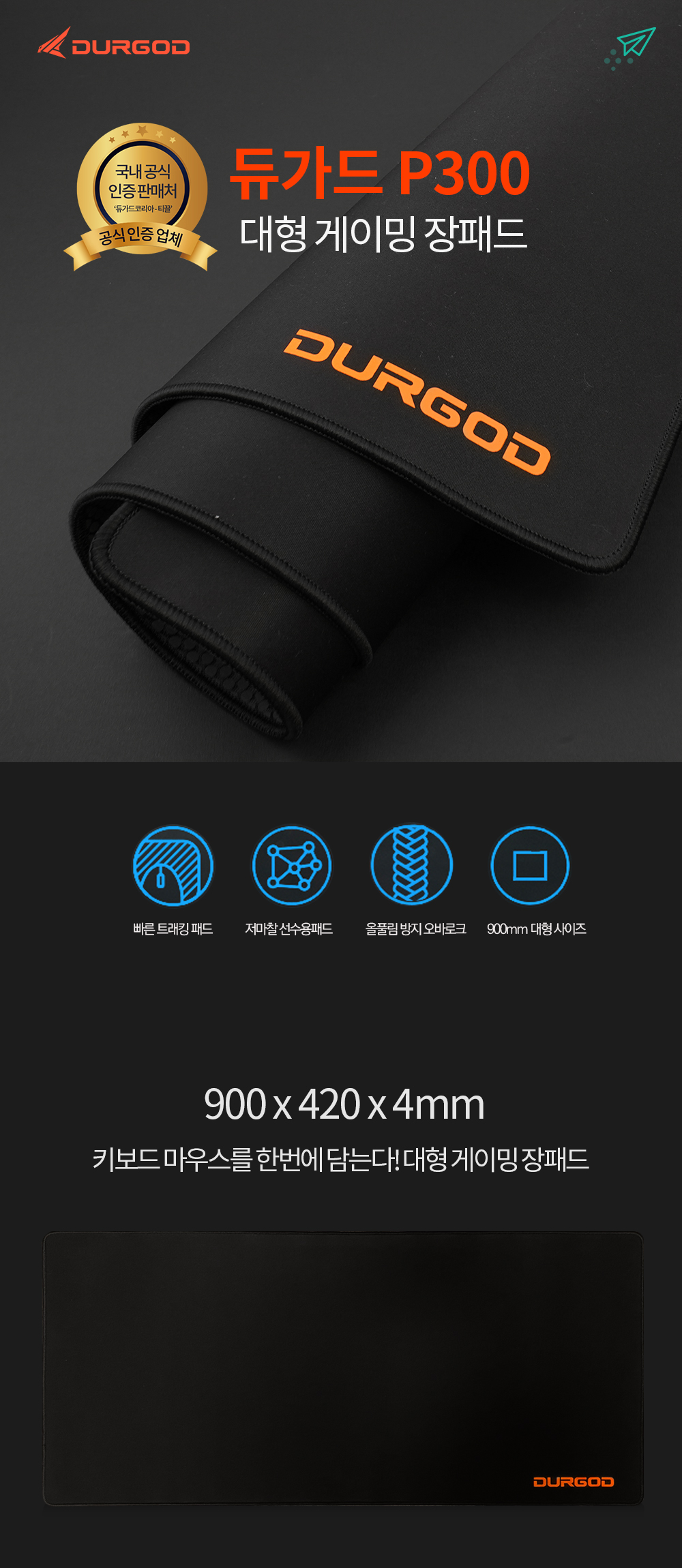 DURGOD P300 대형 게이밍 장패드 이미지/