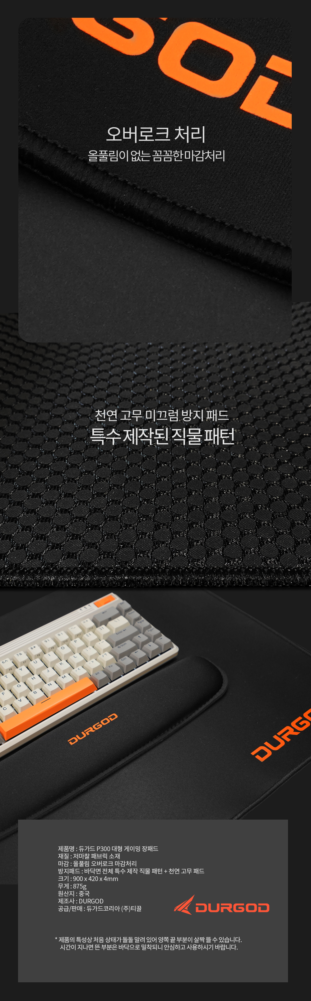 DURGOD P300 대형 게이밍 장패드