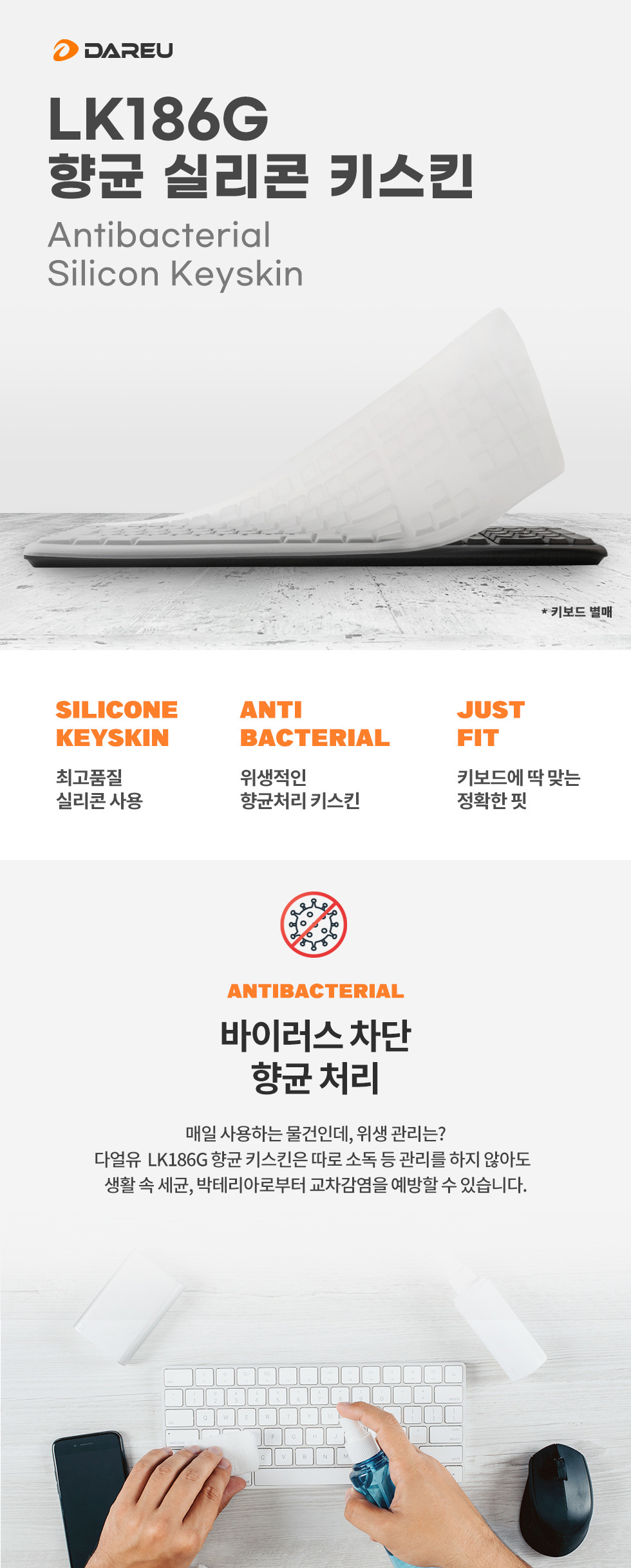 다얼유 LK186G 무선 키보드 항균 실리콘 키스킨 이미지/