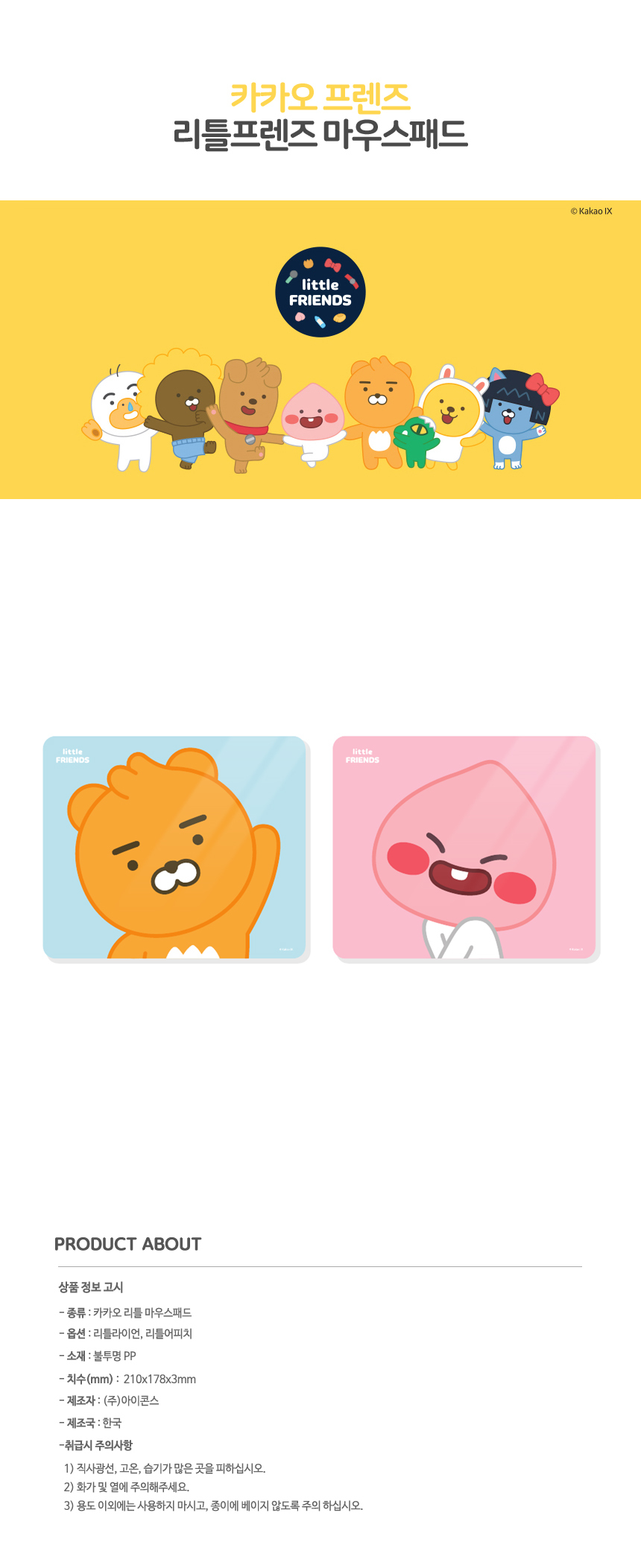 카카오프렌즈 마우스패드 라이언 어피치 이미지/
