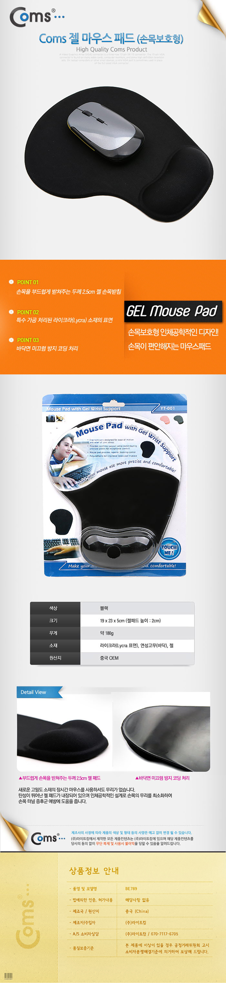 컴스 마우스패드 바닥밀착 검정 젤형 마우스별도 이미지/