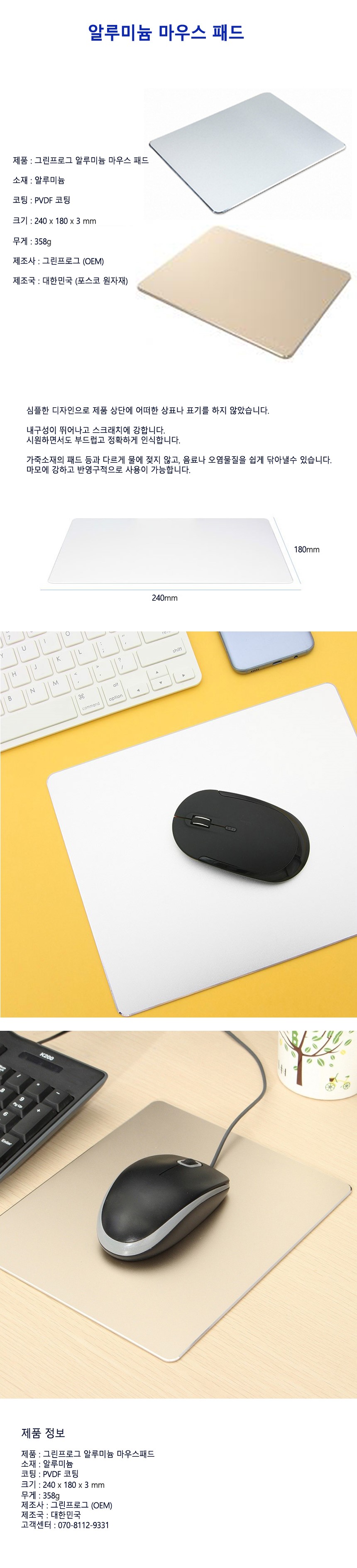알루미늄 마우스패드 / 국산 포스코 원단 이미지/