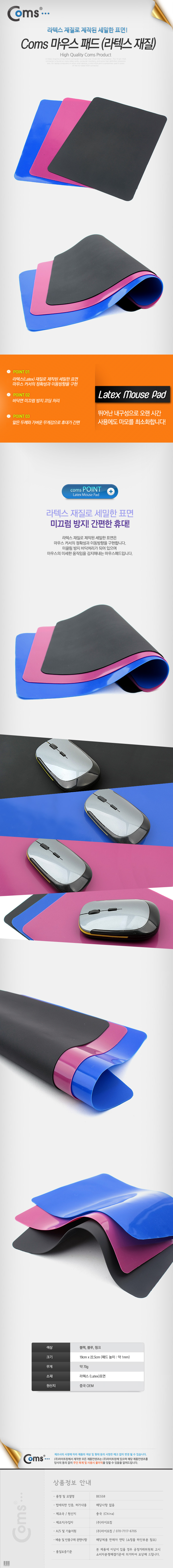 컴스 마우스패드 라텍스재질 블랙