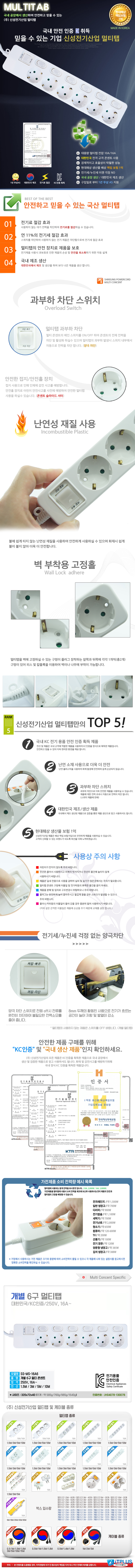 신성전기산업 국산 개별 멀티탭 콘센트 6구 10M(16A) 이미지/