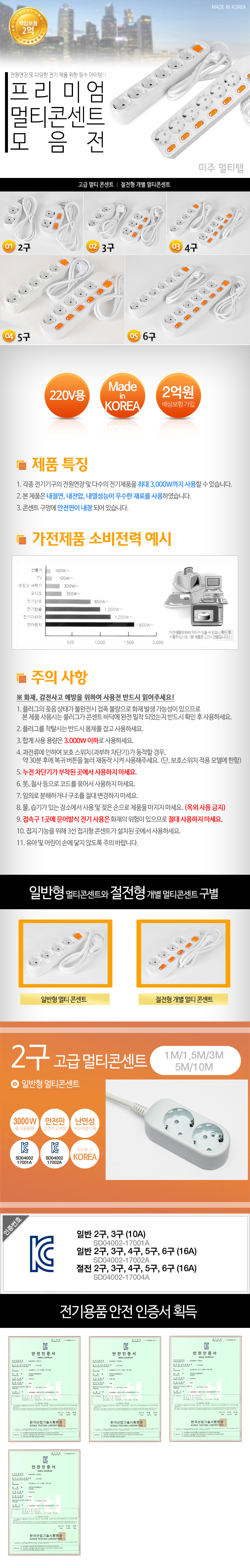 미주산업 국산 일반 멀티탭 콘센트 2구 10M (16A) 이미지/