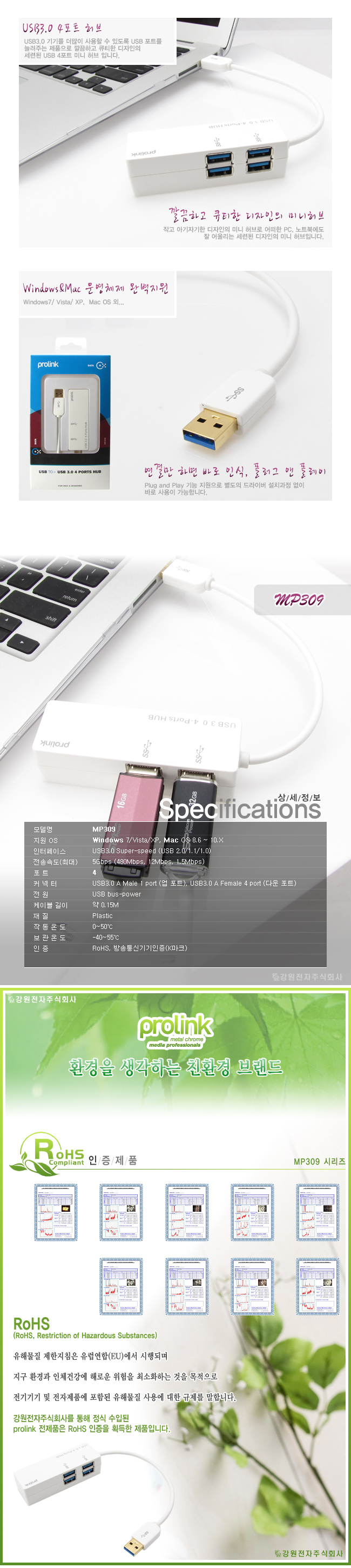 MP309 MP시리즈 USB3.0 4포트 무전원 허브