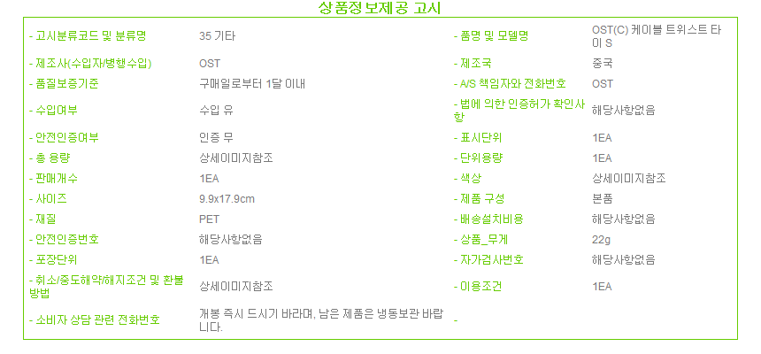 A/S책임자와 전화번호 또는 소비자 상담 관련 전화번호 상품상세설명에 표기