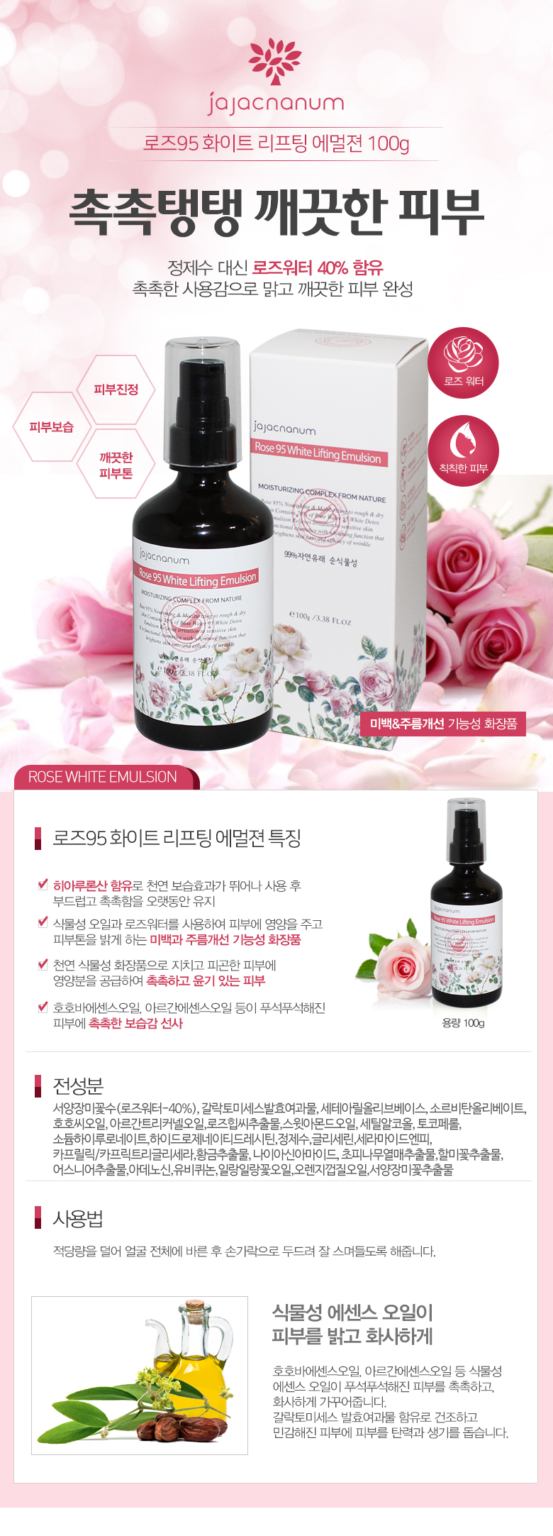 로즈화이트 에멀젼 100g 자작나눔 수제 천연 화장품