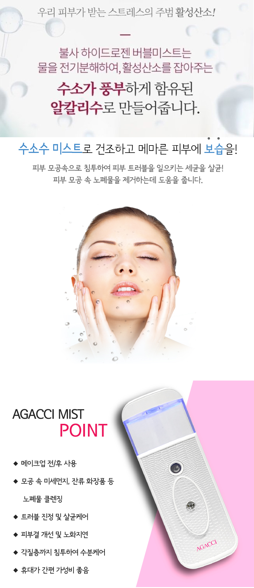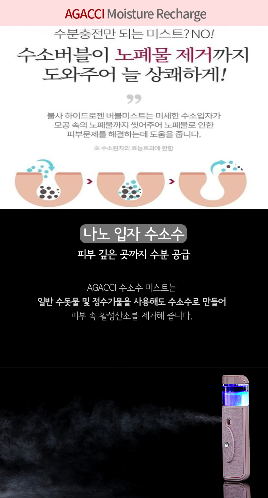AGACCI 정품 나노 수분보습 안개분사 수소발생 미스트 하이드로젠 버블미스트 이미지/